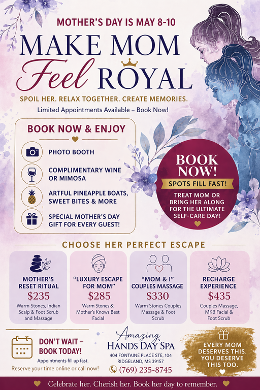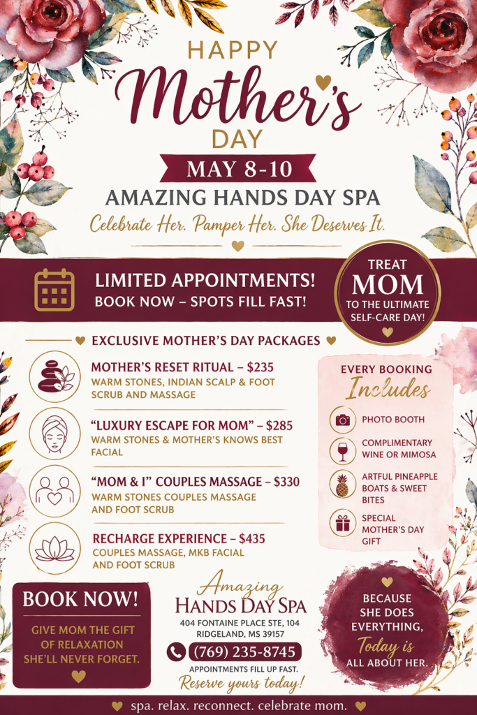 Treat yourself to the most blissful spa experience you’ll ever enjoy…Amazing Hands Day Spa in Ridgeland, MS is where tranquility meets transformation and relaxation knows no bounds.